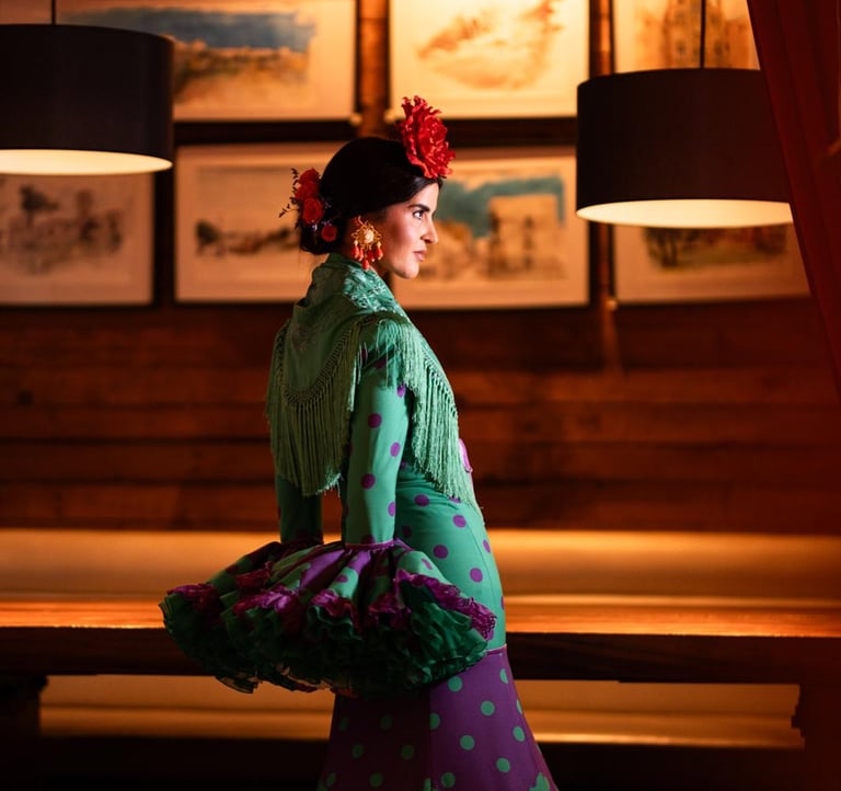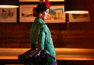La flamenca es nuestra raíz. En esta colección trabajamos de manera totalmente personalizada, creando trajes a medida con el sello propio de n.b.peralta: patrones cuidados, volúmenes estudiados y detalles que marcan la diferencia. Desde la elección del tejido hasta la última puntada, cada diseño se confecciona en el taller con mimo y precisión, respetando la tradición pero aportando una visión contemporánea y elegante.